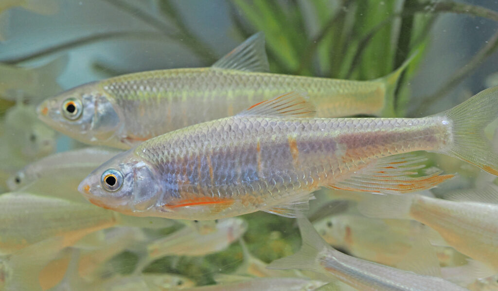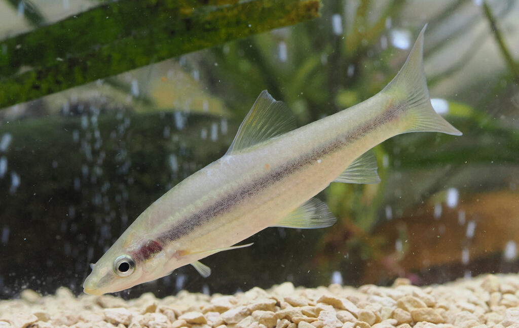 ムギツク(魚類:コイ科 体側の黒い1本線が目立ちます、他の魚に托卵することで知られます)