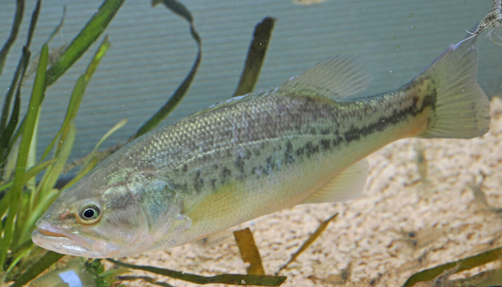 オオクチバス(魚類:サンフィッシュ科 ブラックバスの名で有名な外来魚、特定外来生物に指定されています)。