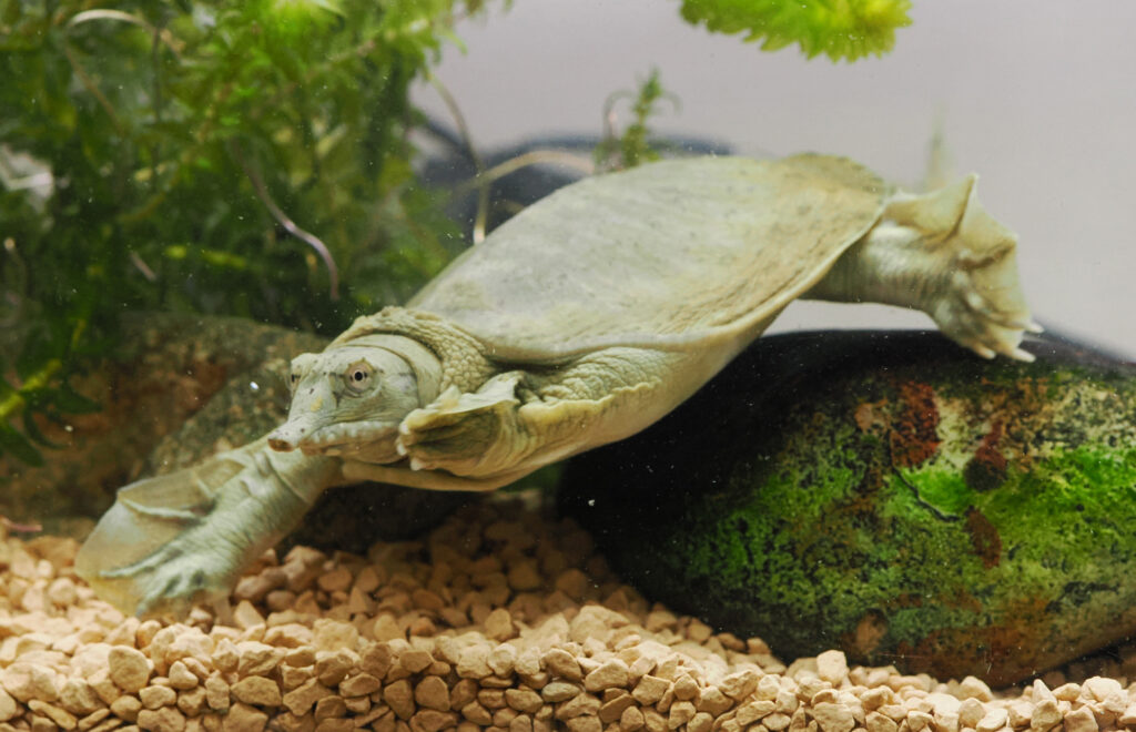 スッポン(爬虫類:スッポン科 噛みついたら雷が鳴るまで放さないと言われます)