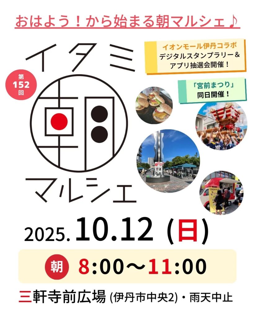 毎月一度、日曜日の朝に開催されている「イタミ朝マルシェ」、10月は12日(日)に開催されます。