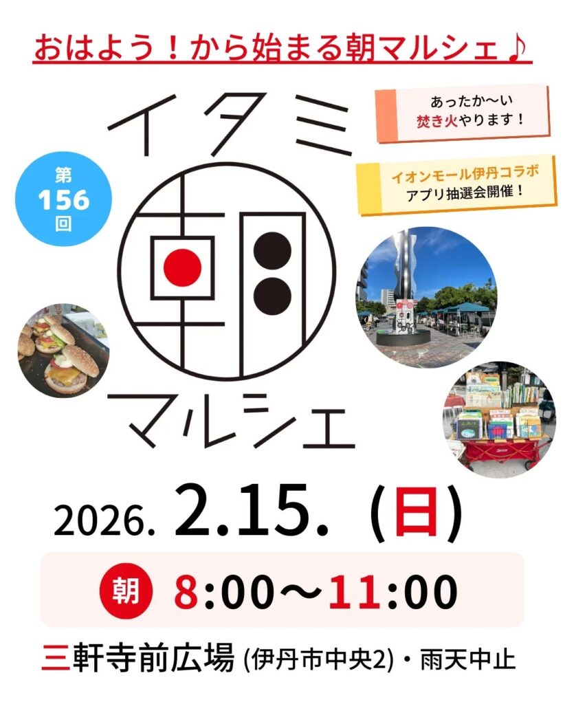 毎月一度、日曜日の朝に開催されている「イタミ朝マルシェ」、2月は15日(日)に開催されます。