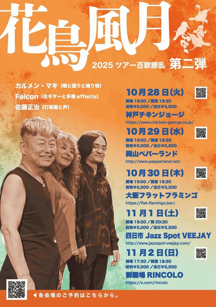 伊丹の老舗のバーWINNERの40thスペシャルライブで2025年6月13日(金)に登場した花鳥風月が「花鳥風月2025ツアー 百歌繚乱 第二弾」で10月28日(火)神戸チキンジョージに来ます!