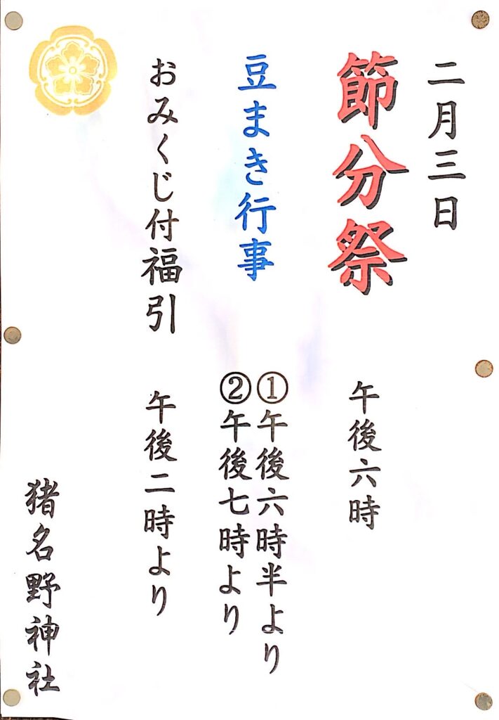 2026年2月3日(火)、猪名野神社において節分祭が催行されます。