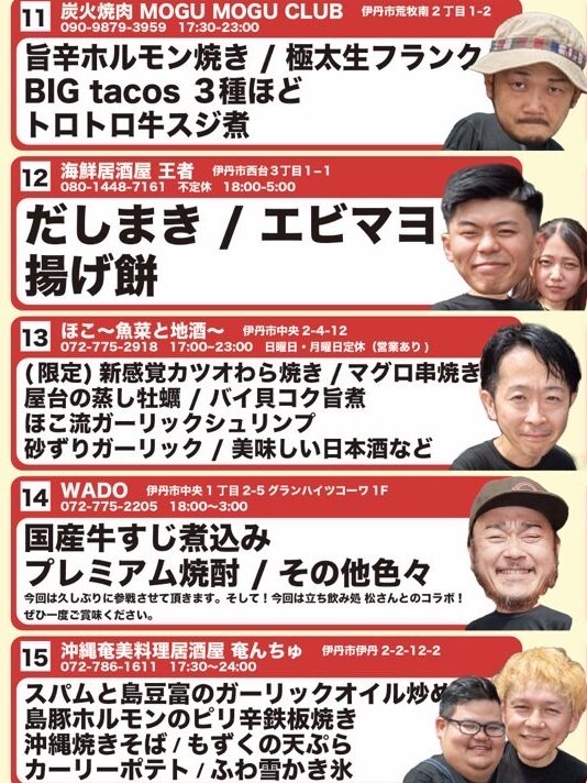 今回も初参加の店舗を含め熱い15店舗が軒を連ねます。