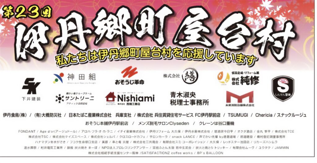 10月4日(土)5日(日)第23回伊丹郷町屋台村三軒寺前広場で、12時〜21時開催!