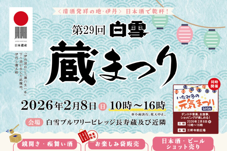 2月8日(日)開催!「第29回白雪 蔵まつり」(いたみ冬の元気まつり2026も同日開催)