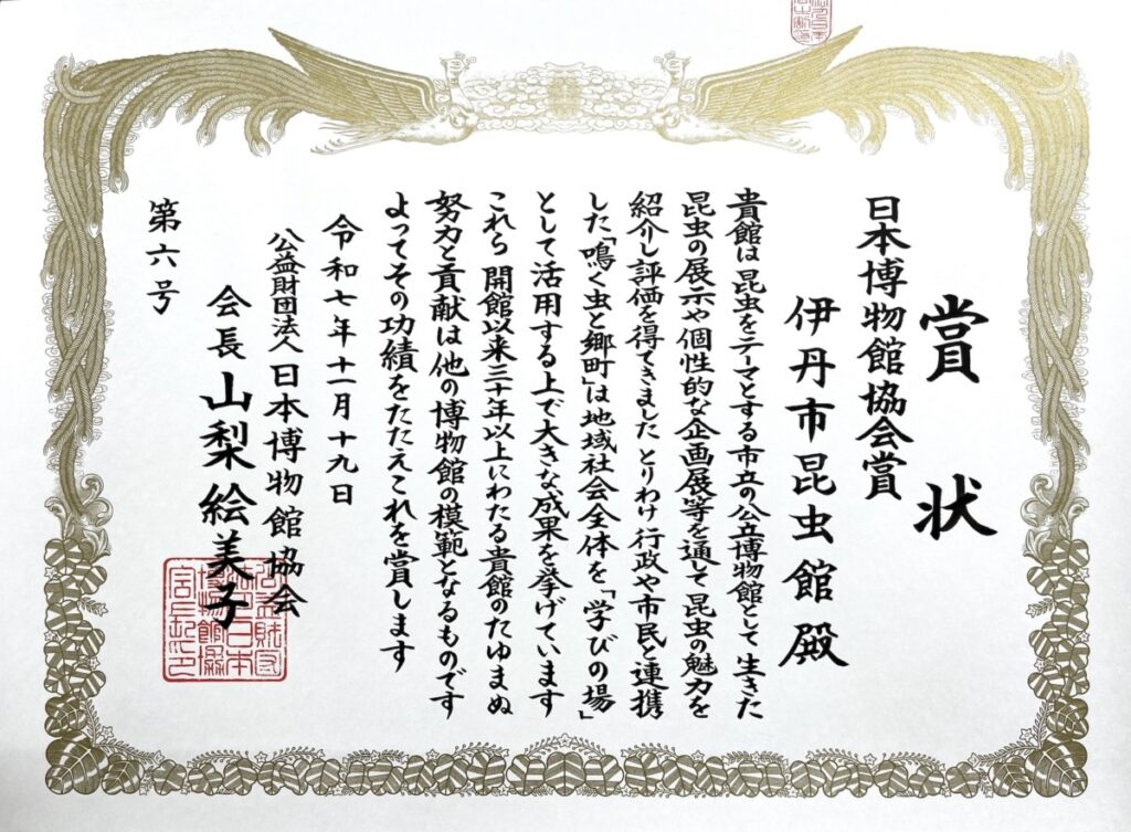 受賞理由には、伊丹市昆虫館が歩んできた独自の活動が深く刻まれています。